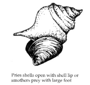shells. Moon snails and murex snails are the most common drillers. (Drilling